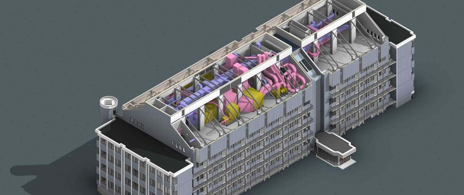Mit unseren digitalen 3D-Modellen erfassen wir Architektur, Tragwerk und TGA präzise und schaffen die Grundlage für Planung, Sanierung und effizientes Facility Management.